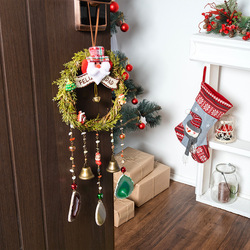 Venta al por mayor Festival regalo Santa Claus carillón de viento con rebanada de ágata y corona adorno de cristal de Navidad para la decoración del hogar