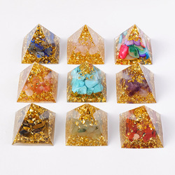 Pirámide de cristal natural 4cm Chips de cristal Chakra Cuentas doradas Pirámide Adorno de resina