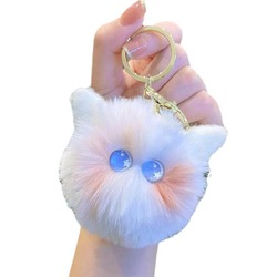 Venta al por mayor 3D lindo gatito de peluche cabeza llavero creativo Animal de dibujos animados Metal llavero accesorios para teléfono móvil bolsa Coche