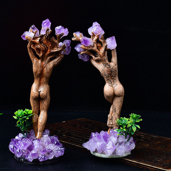 थोक राल शिल्प हाथ से नक्काशीदार अमेथिस्ट दांत देवी देवता मूर्ति क्रिस्टल
