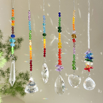 उच्च गुणवत्ता वाले क्रिस्टल प्रिज्म सूर्य कैचर के साथ हवा चिमनी इनडोर सजावट के लिए क्रिस्टल प्रिज्म डिए इंद्रधनुष लाइट कैचर के साथ